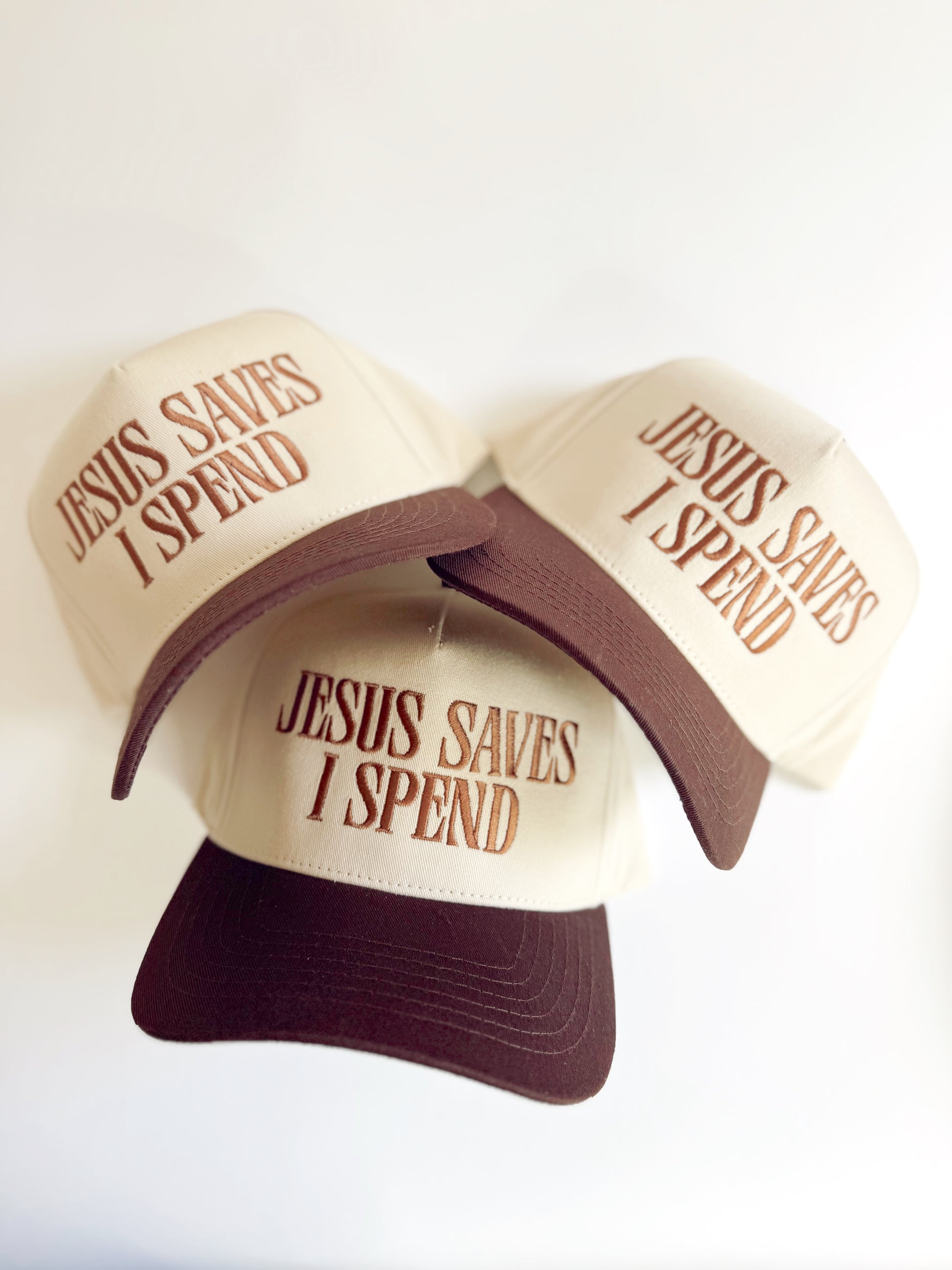 Add a dash of humor to your outfit with the "Jesus Saves I Spend" hat. This playful cap lets you share your faith with a wink, making it a fun and comfortable choice for any casual occasion.